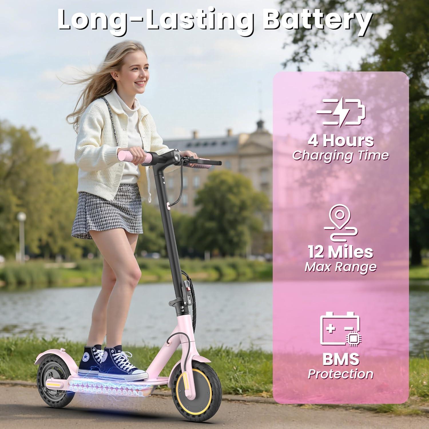 WERHY 10”/8.5” Electric Scooter, 500/350W Powerful Motor, 22/19MPH Top Speed, 25/22/16 Miles Long Range, Folding E Scooter with Dual Braking for Teens and Adults(Pink)