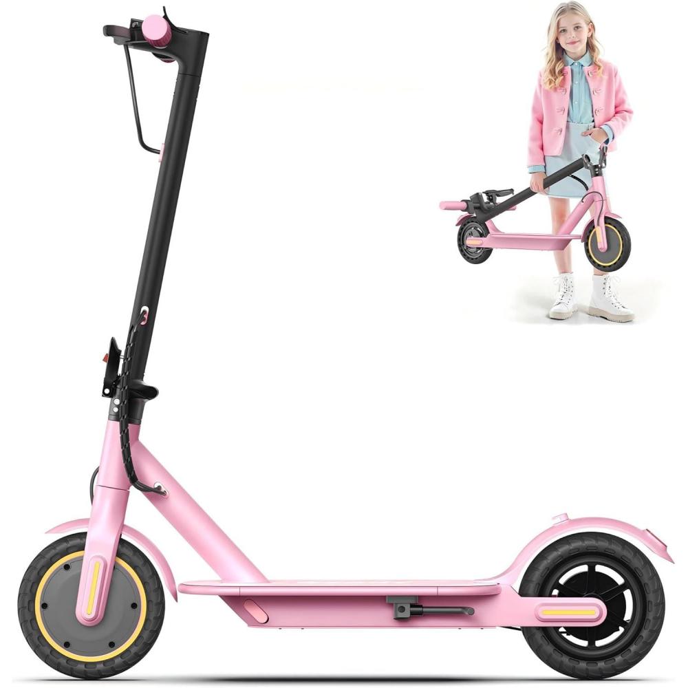 WERHY 10”/8.5” Electric Scooter, 500/350W Powerful Motor, 22/19MPH Top Speed, 25/22/16 Miles Long Range, Folding E Scooter with Dual Braking for Teens and Adults(Pink-Yellow)