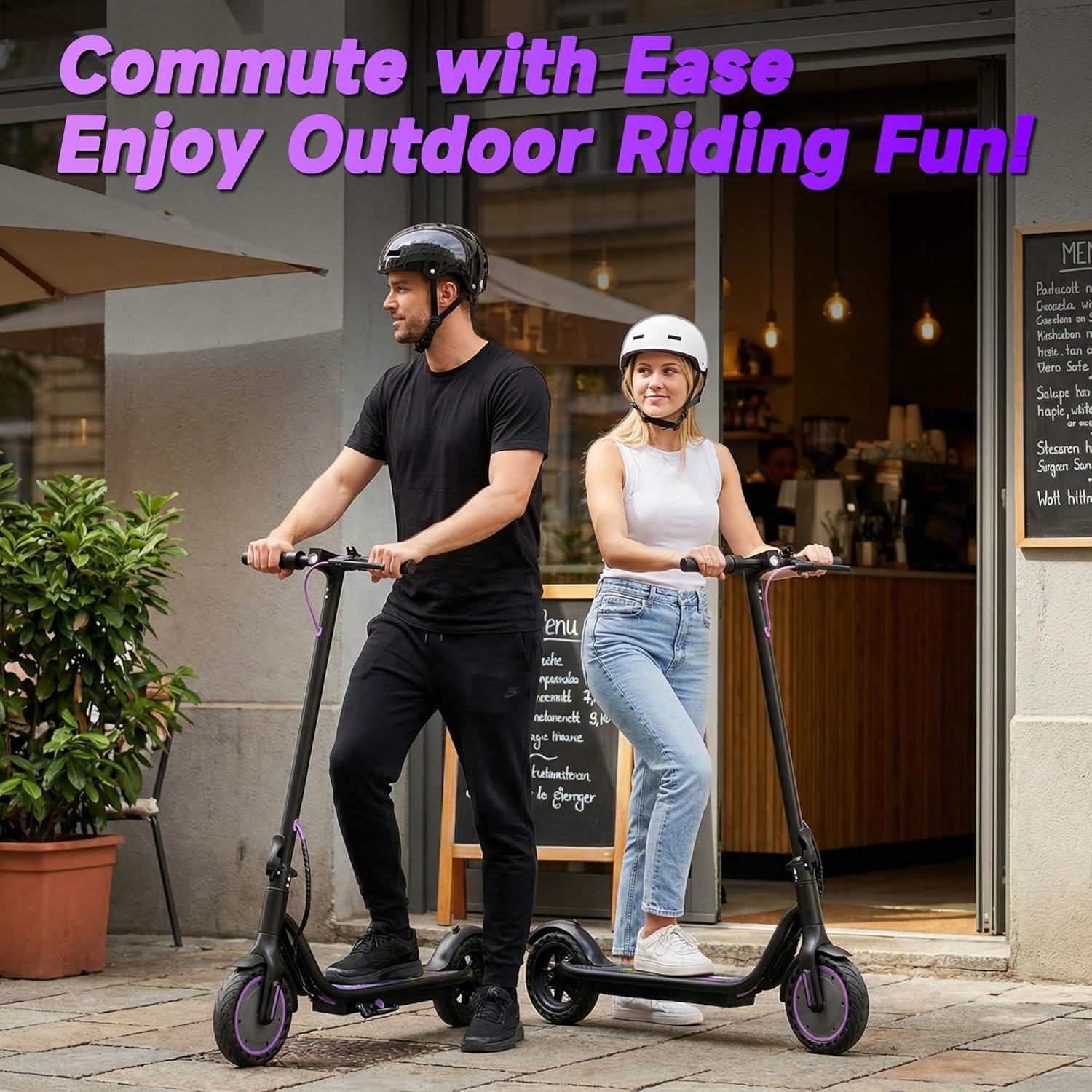 WERHY Electric Scooter with 8.5″/10″ Solid Tire, 350W/500W Powerful Motor & 19/22 MPH Top Speed, 16/25 Miles Long Range, Folding E Scooter with Dual Braking for Teens and Adults(Purple)