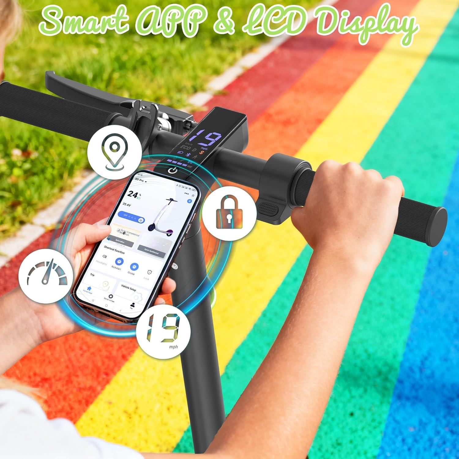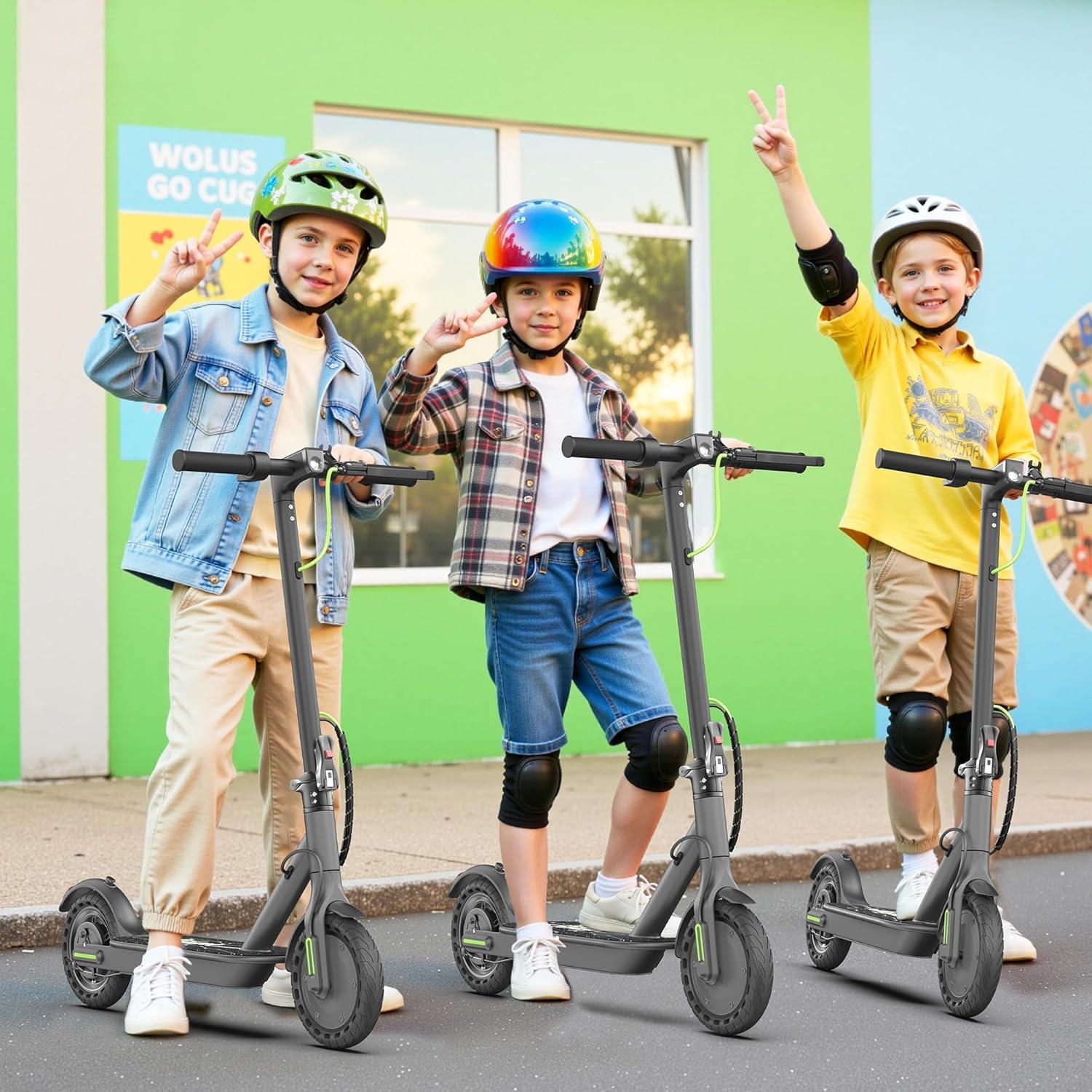 3 Speed Modes: This electric scooter for kids ages 10+ is equipped with a 350W powerful motor and offers three-speed modes. With a double short click on the power button, you can choose the maximum speed of 8 mph, 11 mph, or 19 mph. It's easy to adjust the speed to your preference and riding conditions
