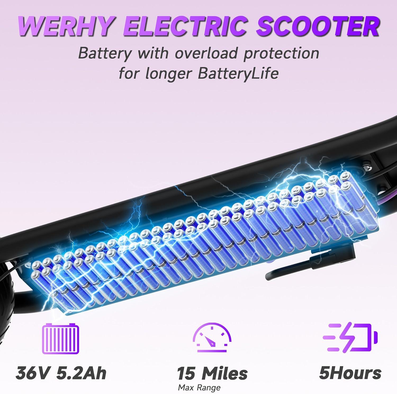 【Long-lasting Battery Capacity】The electric scooter is powered by a high-capacity 187.2Ah battery, offering an impressive range of up to 16 miles on a full charge. Perfect for short commutes or leisurely rides around the neighborhood