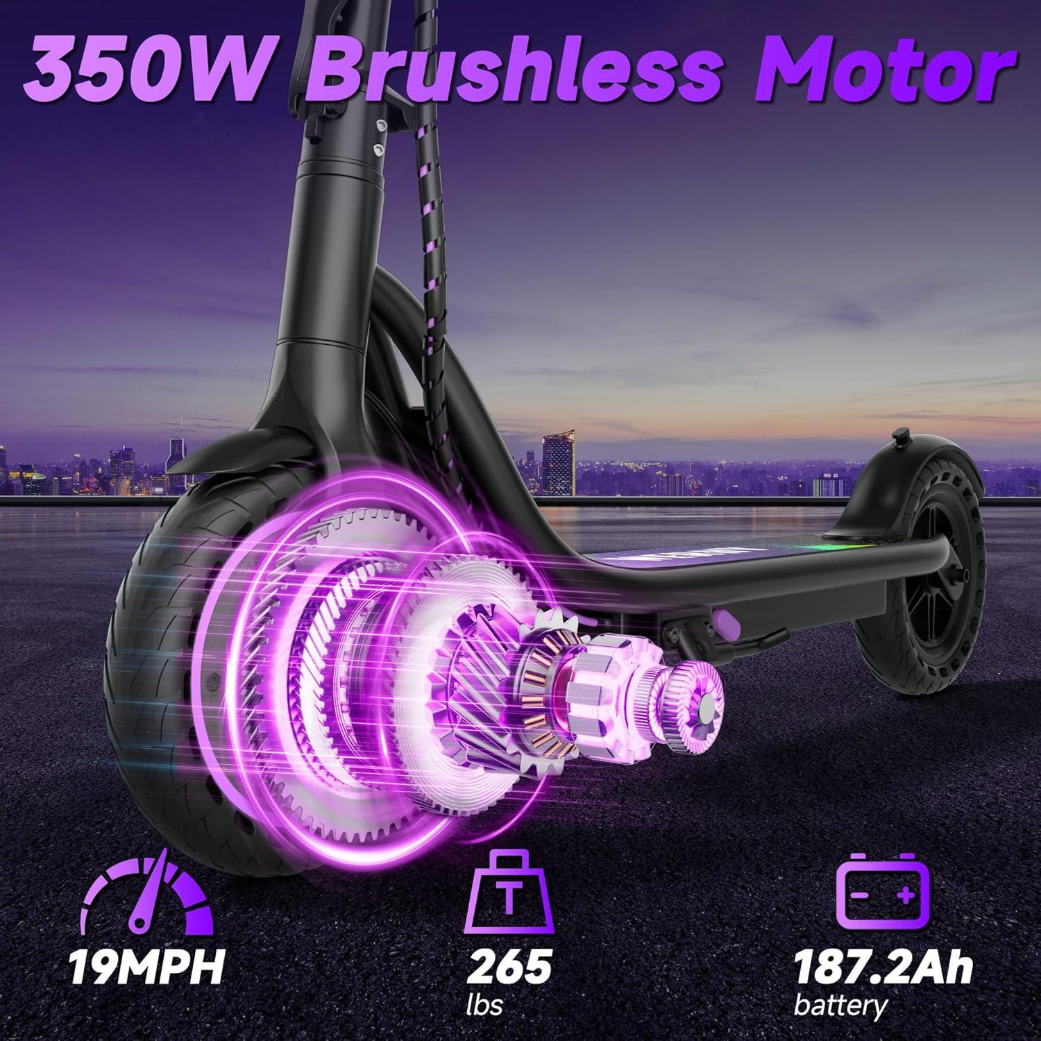 【Powerful Performance】Equipped with a 350W strong motor, this electric scooter reaches speeds of up to 19 MPH and tackles inclines with a max slope angle of 15°. Experience an exhilarating ride like never before